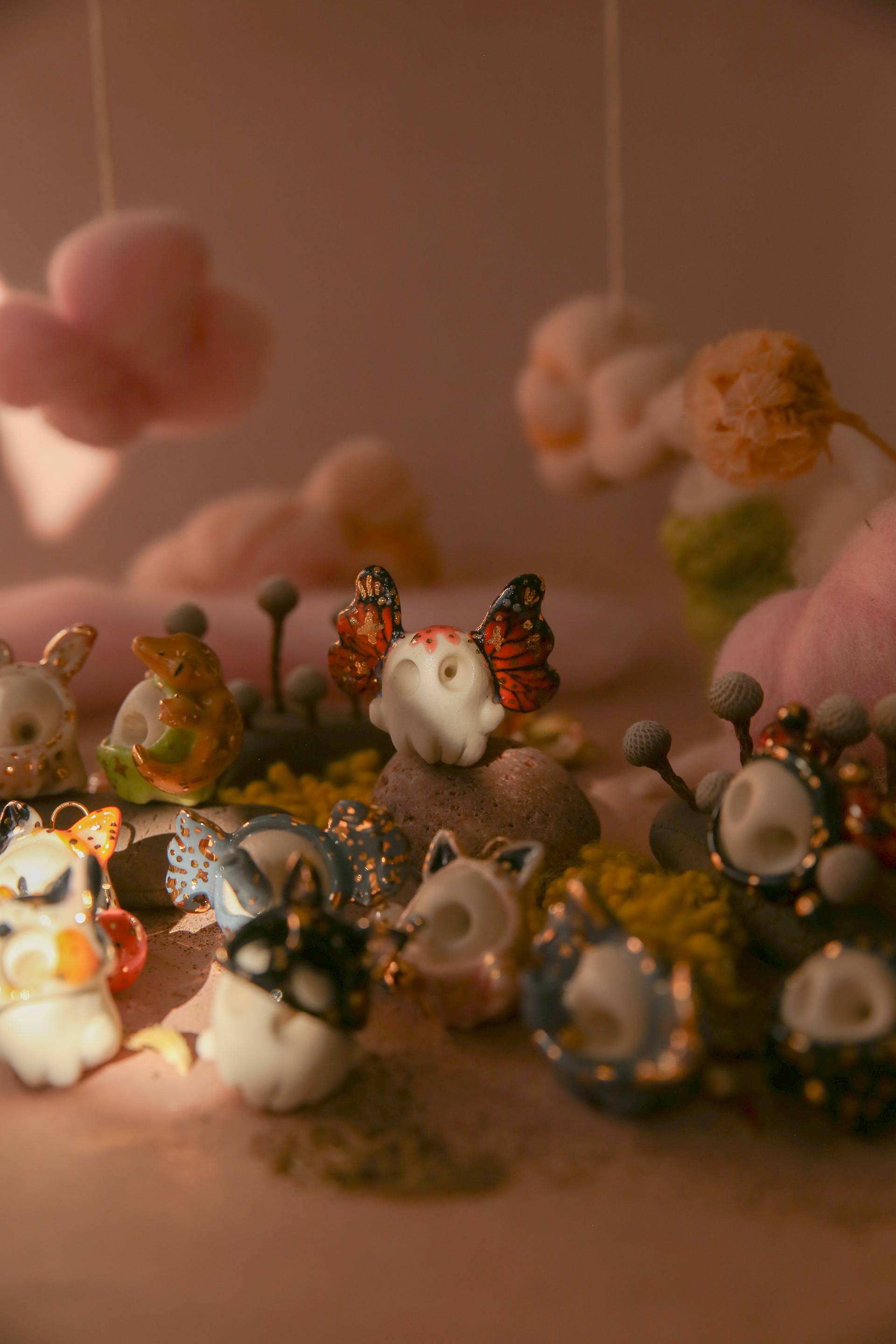 born from meditative carvings and quiet skywatching, cloud kingdom reclaims imagination as sacred tool for survival. rooted in nostalgia and soft surrealism, this collection reshapes memory through play, asking us to believe in the unseen. each story vessel and sculpture carries a fragment of wonder, created to invite inner dialogue and dreamlike reflection.
